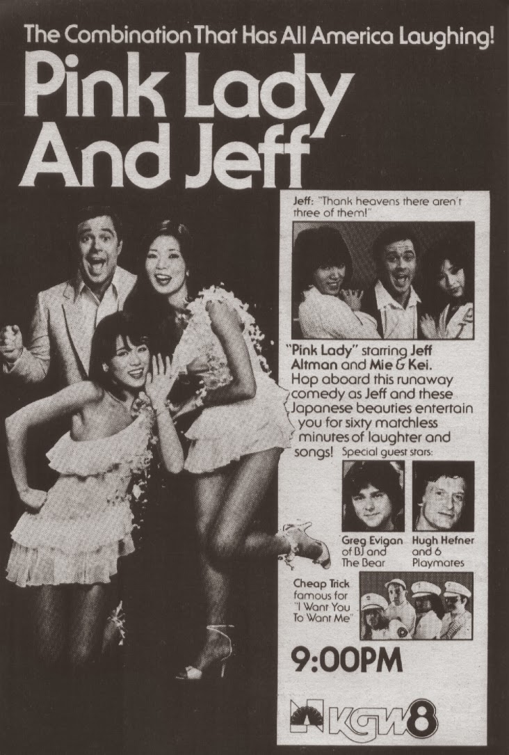 Fred Silverman, the President and CEO of NBC at the time, saw them on Cronkite's program and decided he could cash in their success. He brought Pink Lady to the Krofft's attention to produce a variety show for them. The show would be co-hosted by comedian Jeff Altman--you know him from The Starlight Vocal Band and the film American Hot Wax. (After Pink Lady and Jeff, he would go on to appear regularly on Solid Gold.)