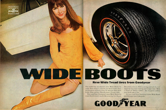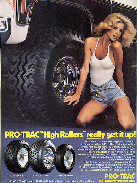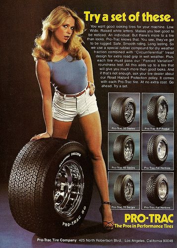 No idea how to sell mufflers, exhausts, and tires and make them look sexy? No problem! Just put a hot chick in your product's ads. Apparently, it worked very well back in the 1970s...or at least, got the customer's attention. You can even get a little wild and racy with the tag lines, because this is the '70s and no one will ever assume you are talking about the car parts, and not lady parts.