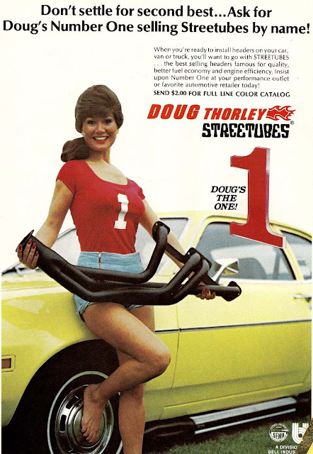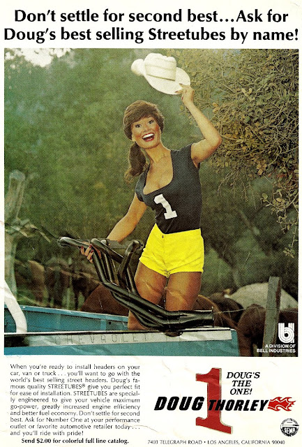 Three Doug Thorley ads; same lucky model (who looks waaaay too happy to be holding an exhaust pipe in that first ad.)